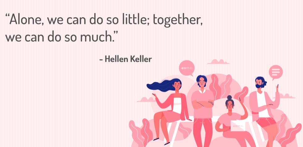 “Alone we can do so little. Together we can do so much.” Helen Keller